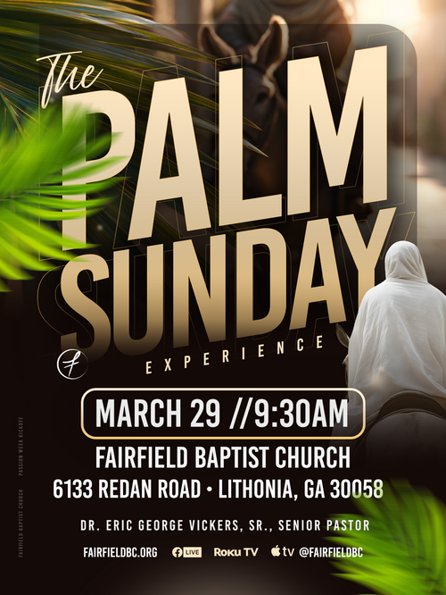 Journey with us through the sacred story of Christ’s love during Holy Week at Fairfield. From Palm Sunday Worship to our Good Friday Service and Communion at the Cross, through the joy of our NXTGEN Easter Egg Hunt, and culminating in our powerful Resurrection Sunday Worship Experiences, this is a week to reflect, celebrate, and gather as a community of faith. Explore the events below, invite your family and friends, and join us as we celebrate the hope and victory of the risen Savior.